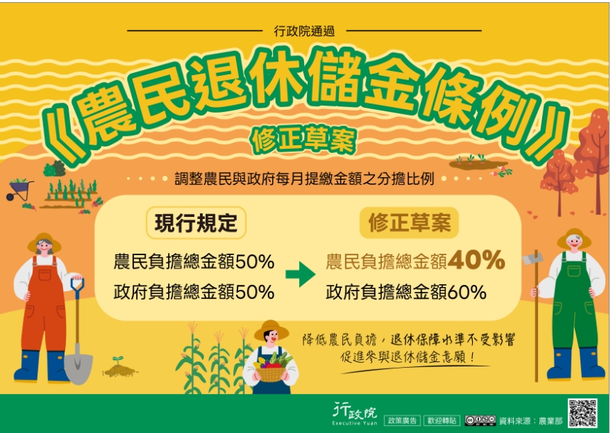 「政策與計畫─政策櫥窗」行政院通過<<農民退休儲金條例>>條正草案