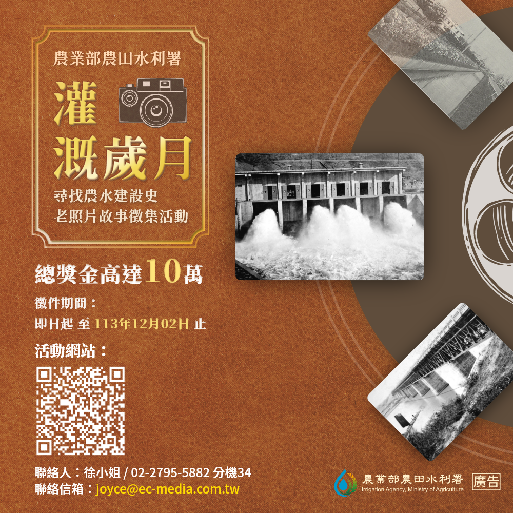 為此特別舉辦老照片故事徵集活動,邀請民眾提供民國100年以前(含)所留下的農水建設景觀老照片,或是農田水利人文風情,並講述照片中的歷史故事,共同尋回百年的記憶,展現臺灣農水建設史的悠久深度。